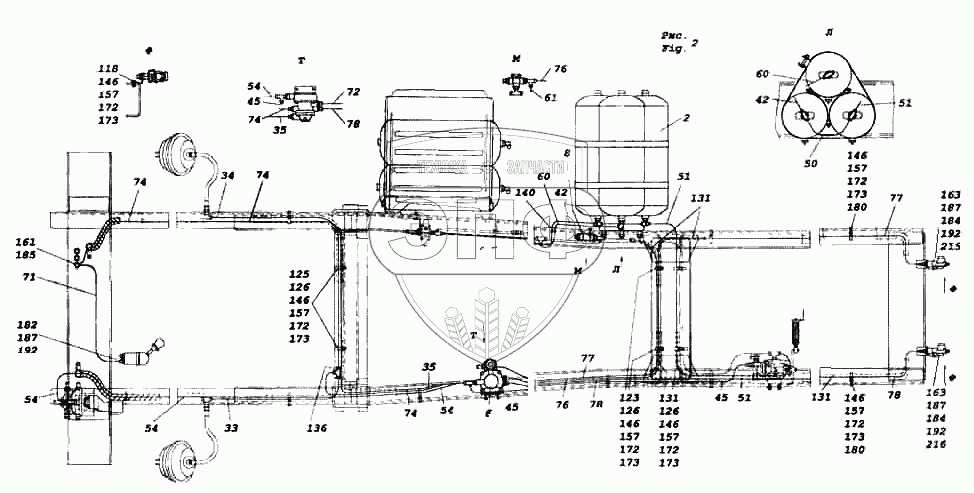 Каталог запасных частей к технике: Камский автозавод 6522. Установка пневмотормозов