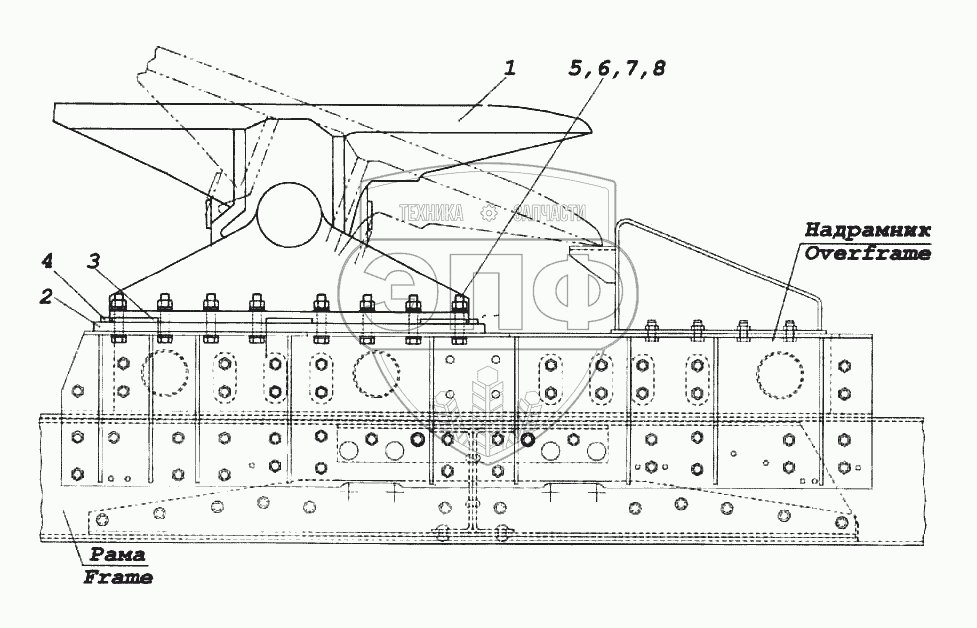 Каталог запасных частей к технике: Камский автозавод 6522. Установка седельного устройства