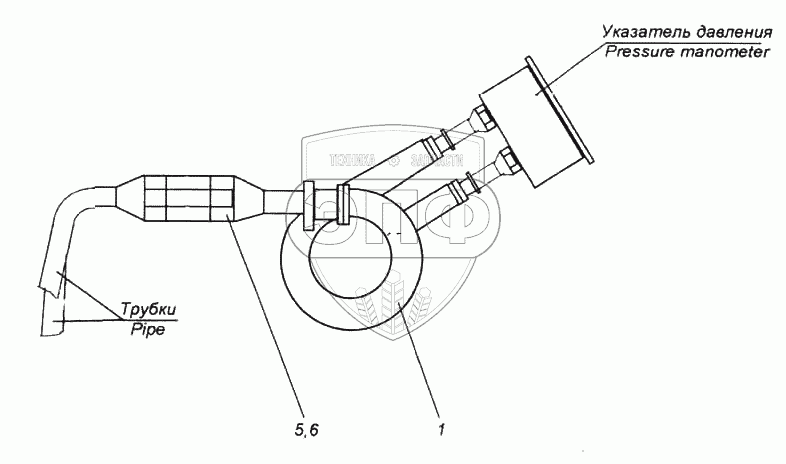 Каталог запасных частей к технике: Камский автозавод 6522. Установка трубопроводов к манометру