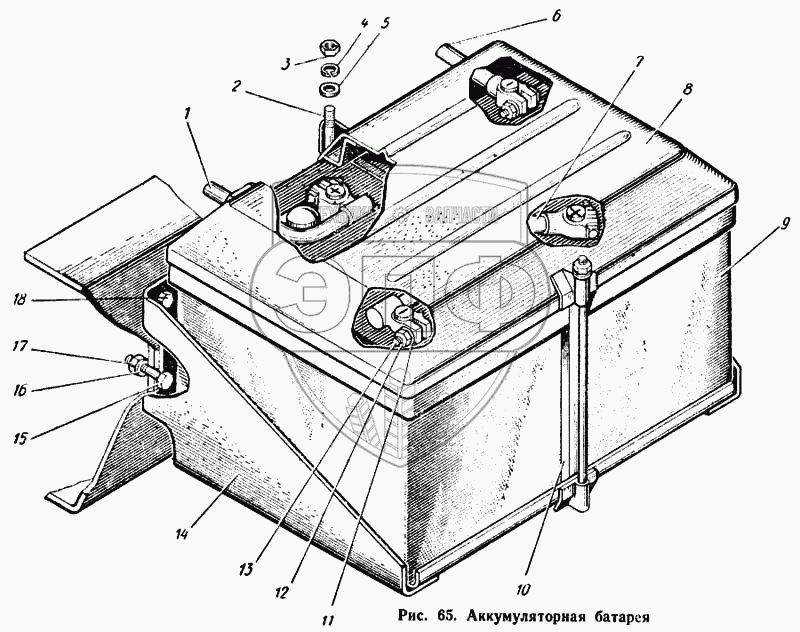 Каталог запасных частей к технике: КАЗ 608. Аккумуляторная батарея