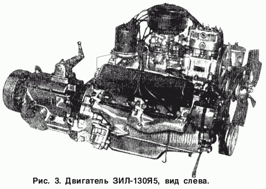 Каталог запасных частей к технике: КАЗ 608. Двигатель ЗИЛ-130Я5, вид слева