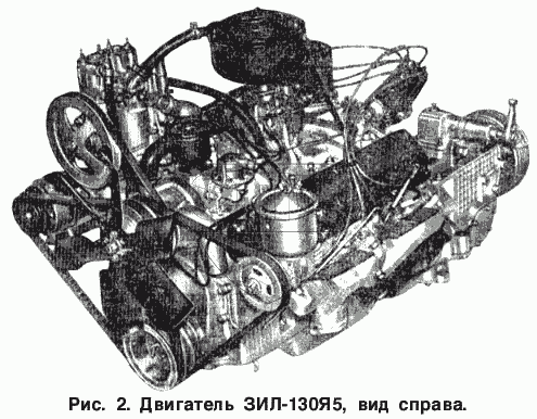 Каталог запасных частей к технике: КАЗ 608. Двигатель ЗИЛ-130Я5, вид справа