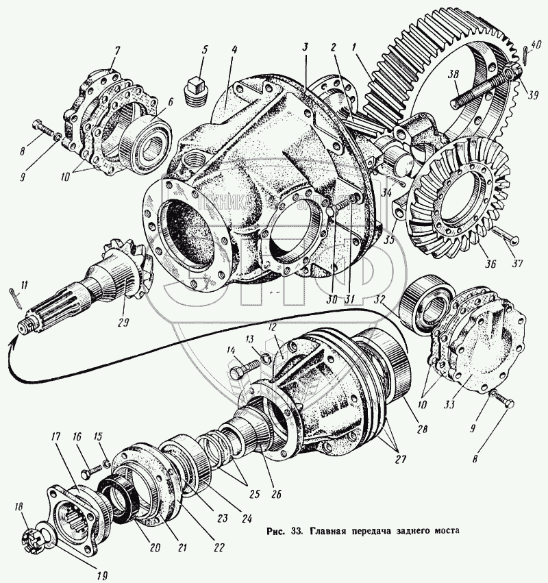 Каталог запасных частей к технике: КАЗ 608. Главная передача заднего моста