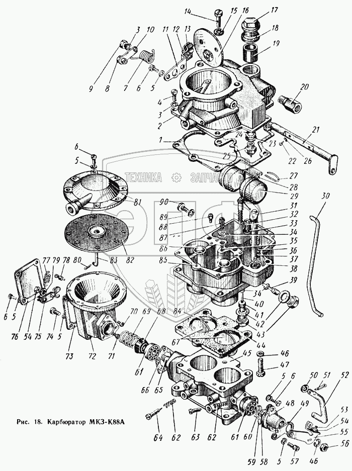 Каталог запасных частей к технике: КАЗ 608. Карбюратор МКЗ-К88А