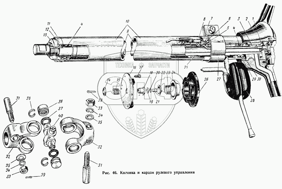 Каталог запасных частей к технике: КАЗ 608. Колонка и кардан рулевого управления
