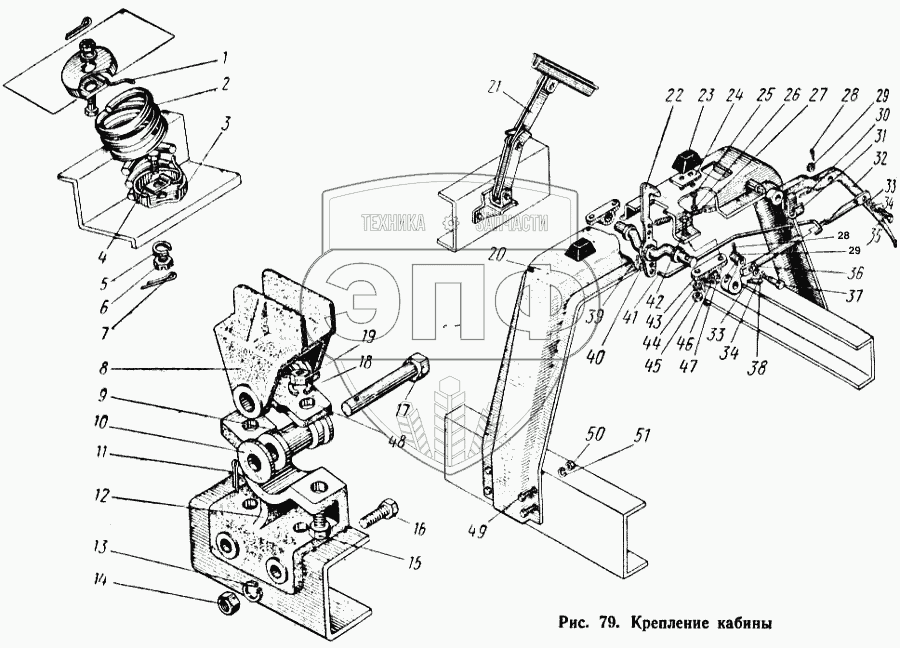 Каталог запасных частей к технике: КАЗ 608. Крепление кабины