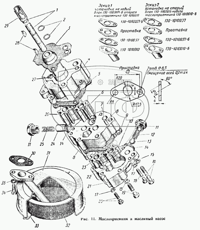 Каталог запасных частей к технике: КАЗ 608. Маслоприемник и масляный насос