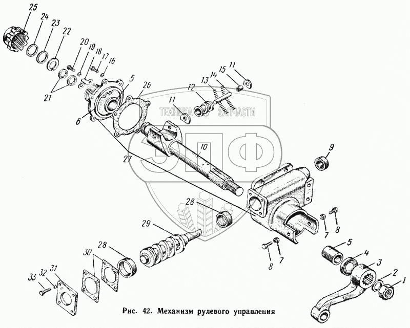 Каталог запасных частей к технике: КАЗ 608. Механизм рулевого управления