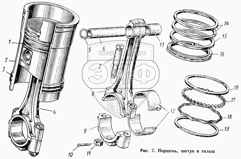 Каталог запасных частей к технике: КАЗ 608. Поршень, шатун и гильза