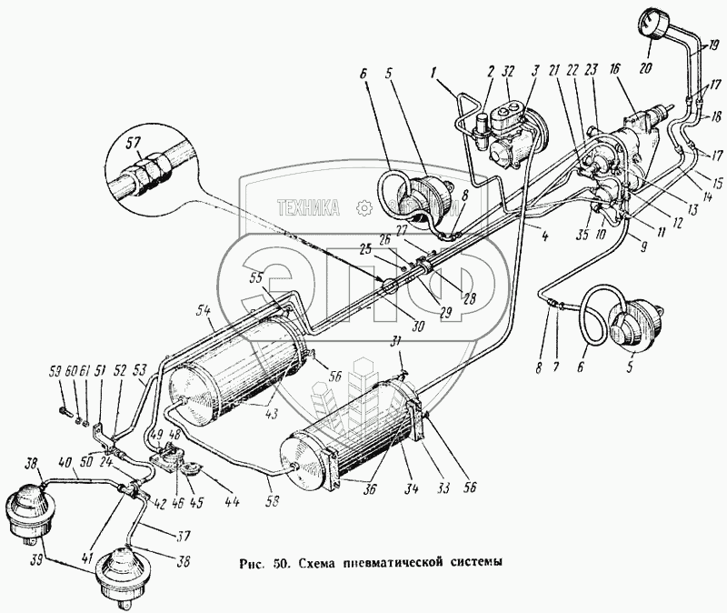 Каталог запасных частей к технике: КАЗ 608. Схема пневматической системы