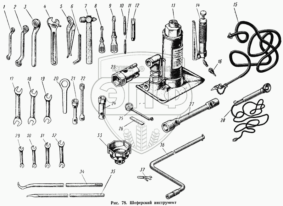 Каталог запасных частей к технике: КАЗ 608. Шоферский инструмент