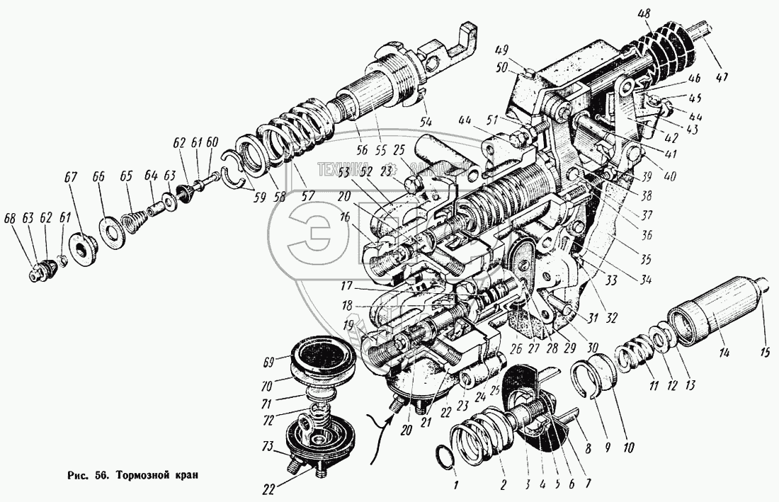 Каталог запасных частей к технике: КАЗ 608. Тормозной кран