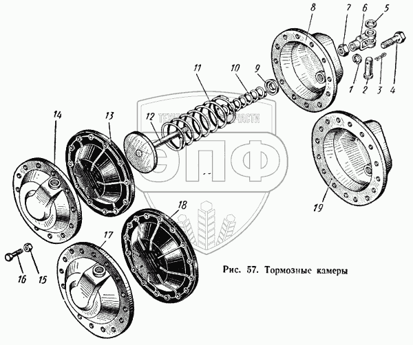 Каталог запасных частей к технике: КАЗ 608. Тормозные камеры