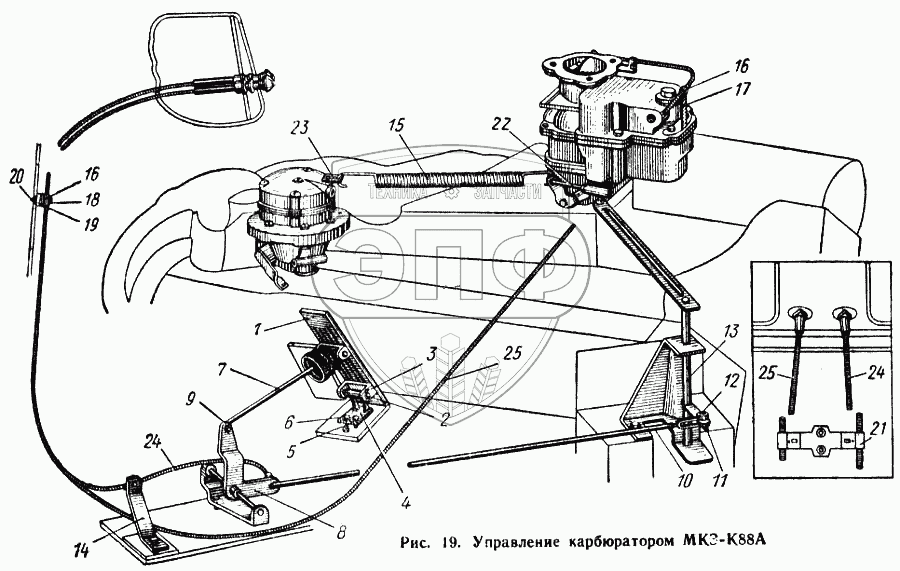 Каталог запасных частей к технике: КАЗ 608. Управление карбюратором МКЗ-К88А