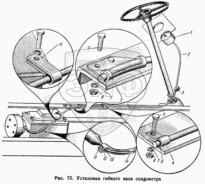 Каталог запасных частей к технике: КАЗ 608. Установка гибкого вала спидометра