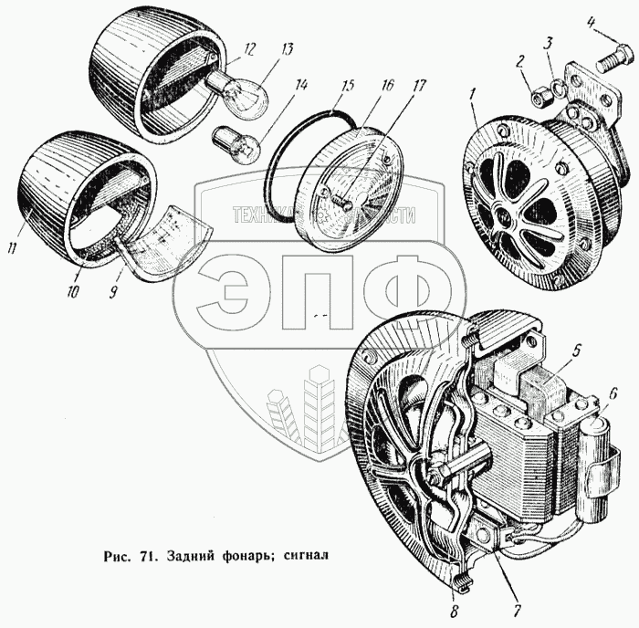 Каталог запасных частей к технике: КАЗ 608. Задний фонарь, сигнал