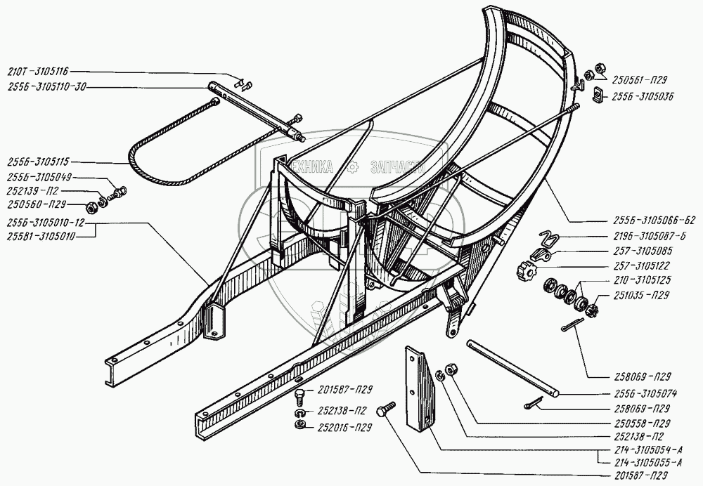 | 255Б-3105010-12 | 255Б-3105010-12 | Держатель запасного колеса | Нет на складе | |