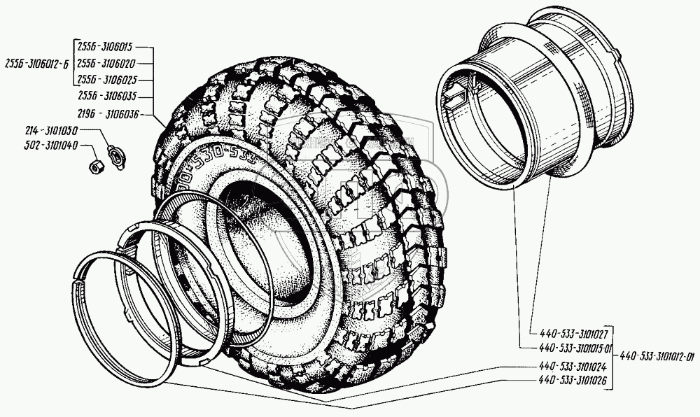 | 440-533-3101012-01 | 440-533-3101012-01 | Колесо 440х533 | Нет на складе | |