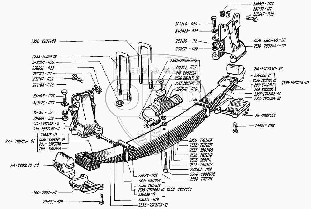 Каталог запасных частей к технике: КрАЗ-255. Рессоры передние
