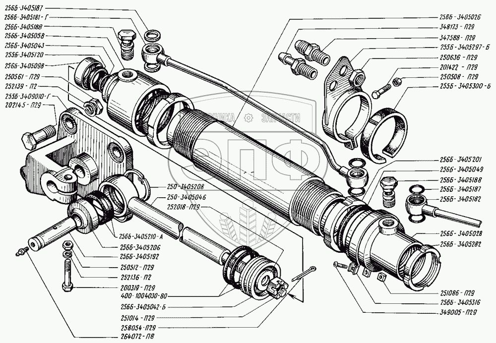 Каталог запасных частей к технике: КрАЗ-255. Цилиндр силовой гидроусилителя рулевого управления
