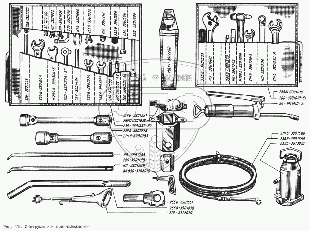 Каталог запасных частей к технике: КрАЗ-256. Инструмент и принадлежности