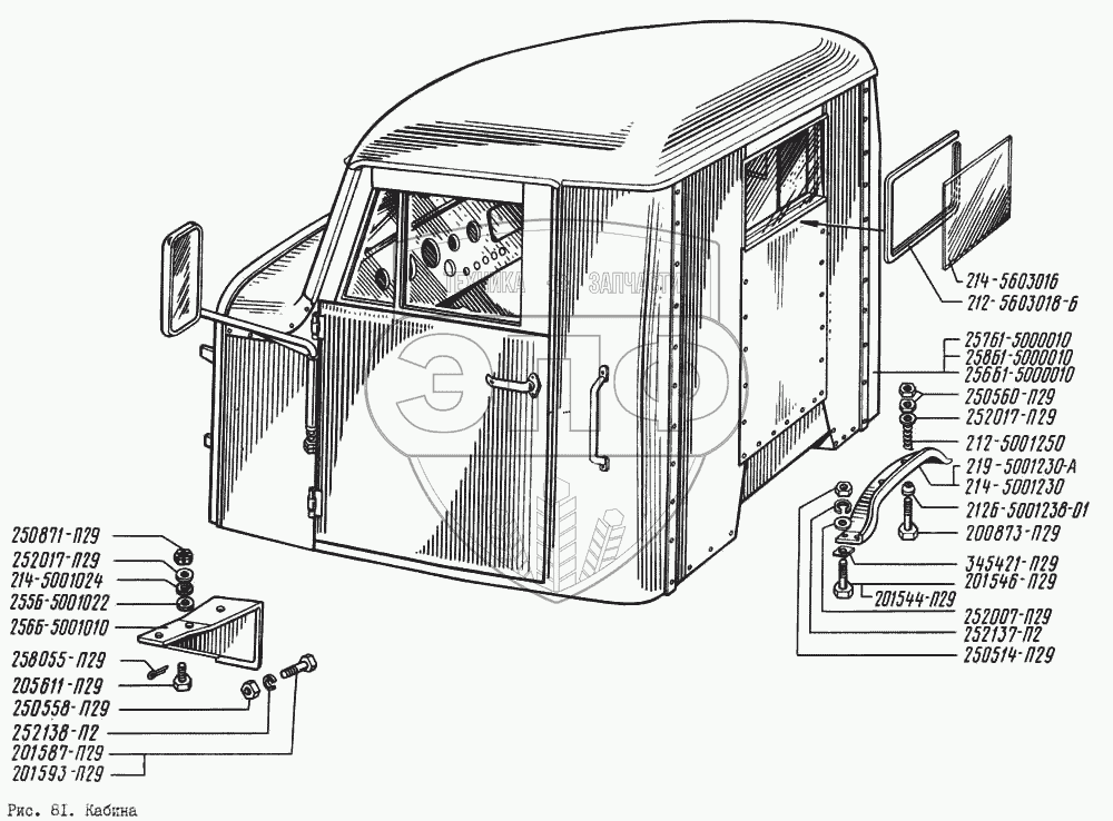 Каталог запасных частей к технике: КрАЗ-256. Кабина