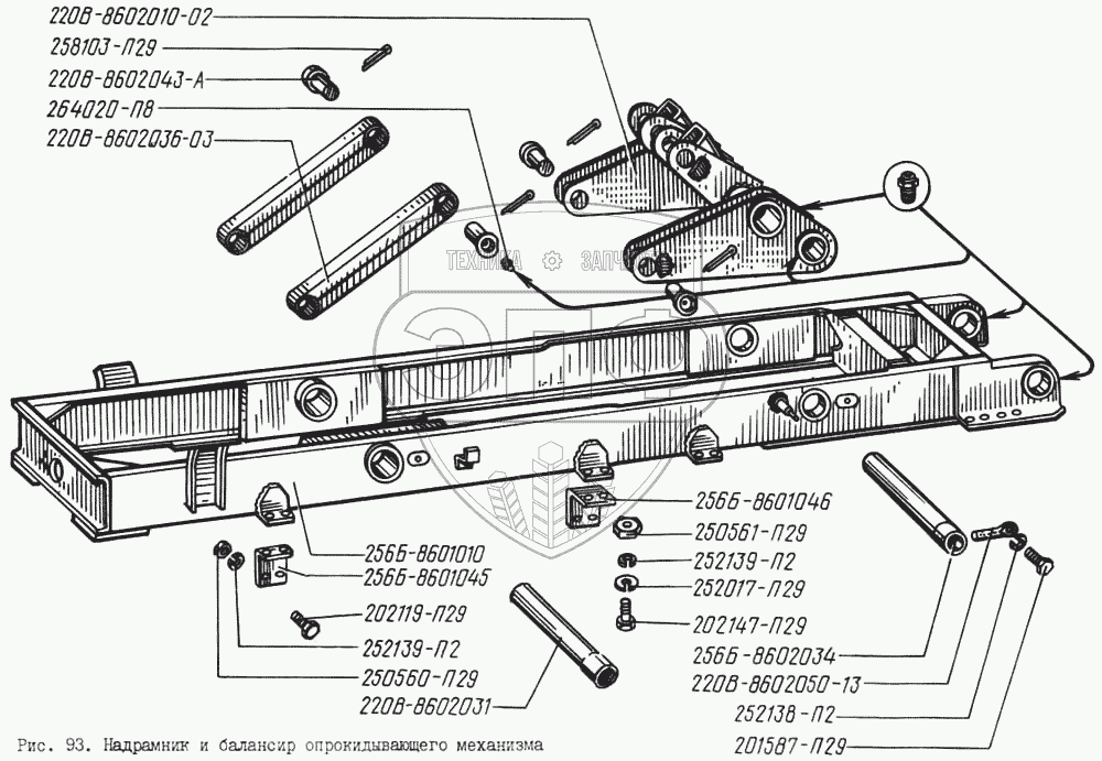 Каталог запасных частей к технике: КрАЗ-256. Надрамник и балансир опрокидывающего механизма