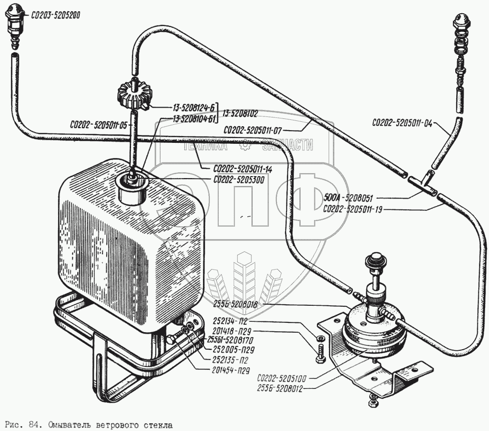 Каталог запасных частей к технике: КрАЗ-256. Омыватель ветрового стекла