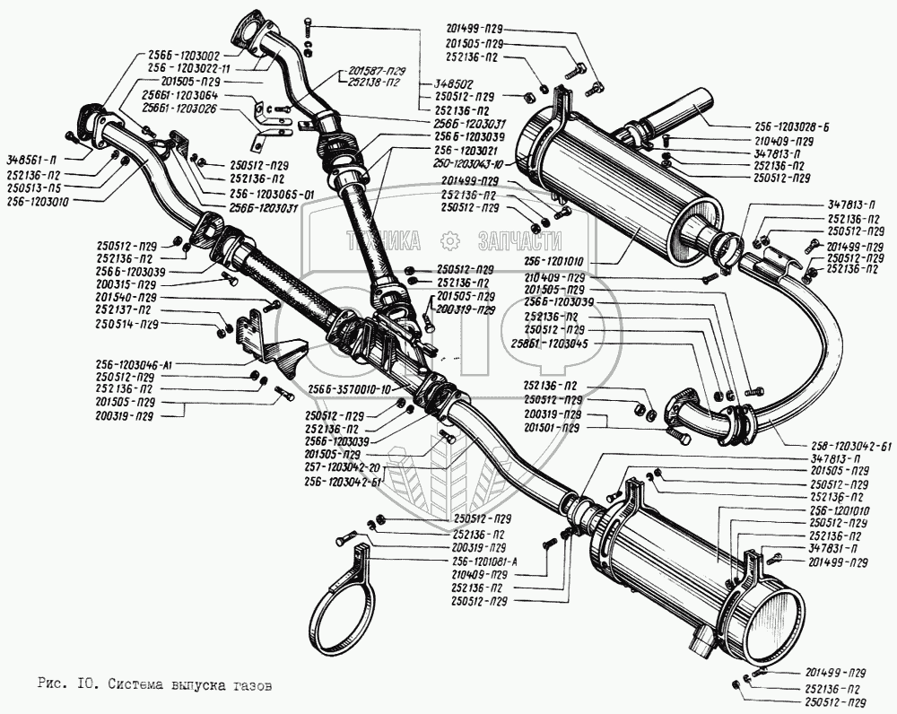 Каталог запасных частей к технике: КрАЗ-256. Система выпуска газов