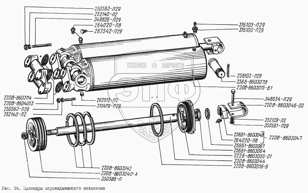Каталог запасных частей к технике: КрАЗ-256. Цилиндры опрокидывающего механизма