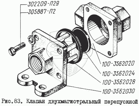 Каталог запасных частей к технике: КрАЗ-260. Клапан двумагистральный перепускной