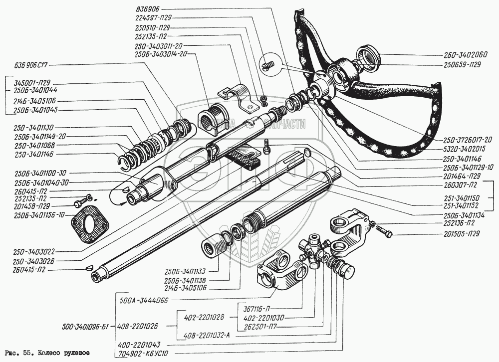 Каталог запасных частей к технике: КрАЗ-260. Колесо рулевое