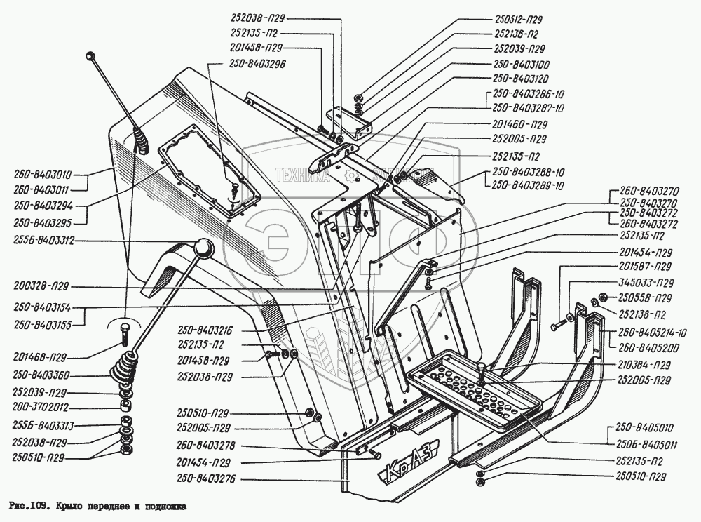 Каталог запасных частей к технике: КрАЗ-260. Крыло переднее и подножка