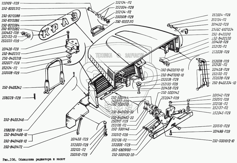 Каталог запасных частей к технике: КрАЗ-260. Облицовка радиатора и капот