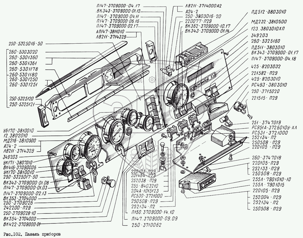 Каталог запасных частей к технике: КрАЗ-260. Панель приборов