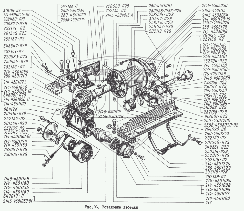 Каталог запасных частей к технике: КрАЗ-260. Установка лебедки