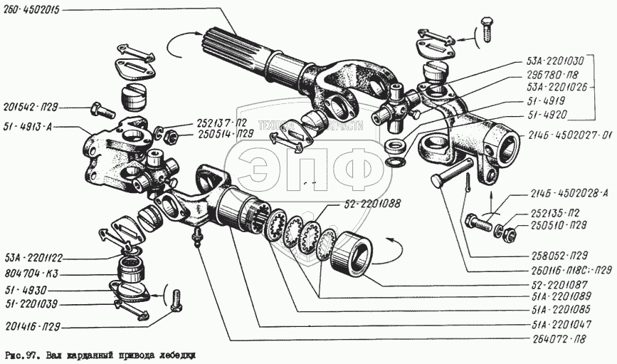 Каталог запасных частей к технике: КрАЗ-260. Вал карданный привода лебедки