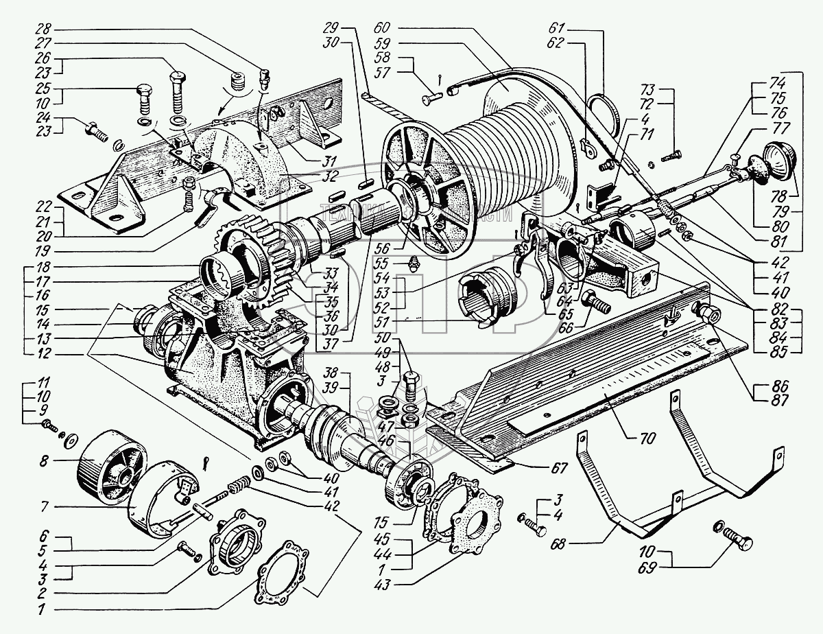 Каталог запасных частей к технике: КрАЗ-63221. Лебедка