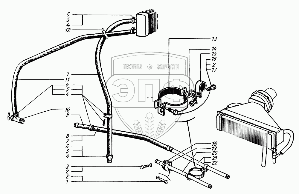 Каталог запасных частей к технике: КрАЗ-63221. Трубопроводы системы отопления кабины
