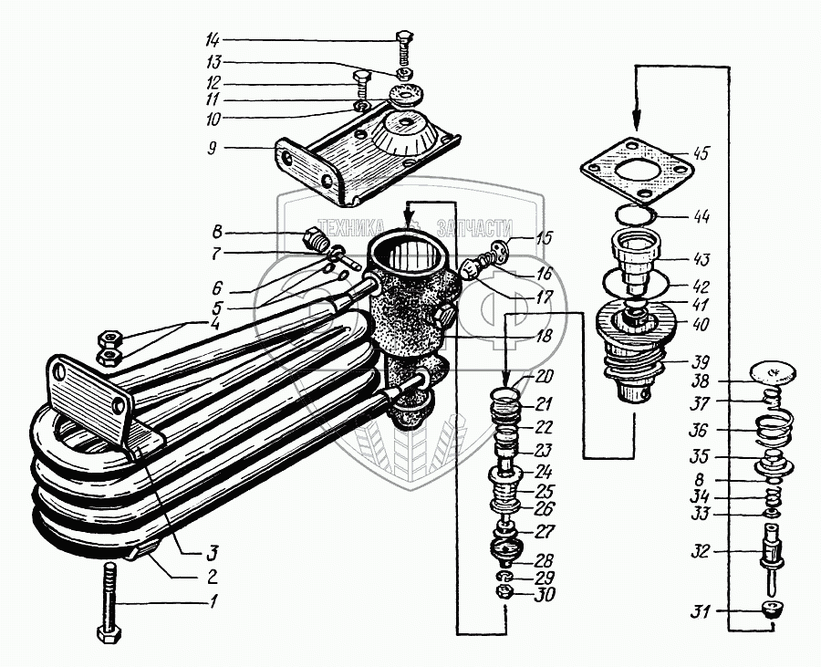 Каталог запасных частей к технике: КрАЗ-63221. Влагомаслоотделитель с регулятором давления