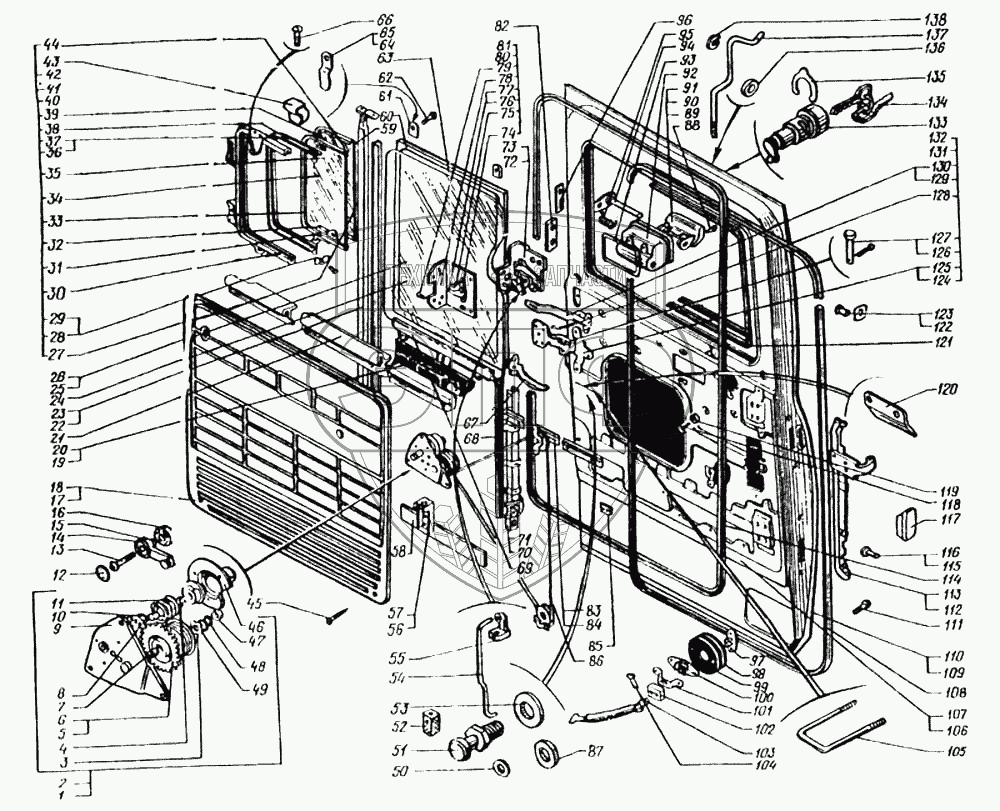 | 81 | 6510-6105010-10 | Кронштейн с замком двери и тягами в сборе правый | Нет на складе | |