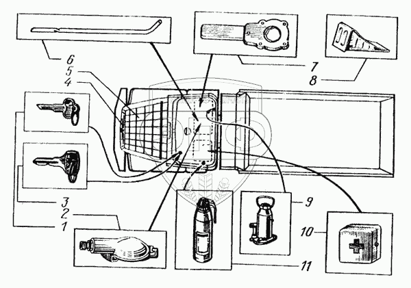 | 7 | 255Б-3901651 | Ключ воротка подъема запасного колеса | Нет на складе | |