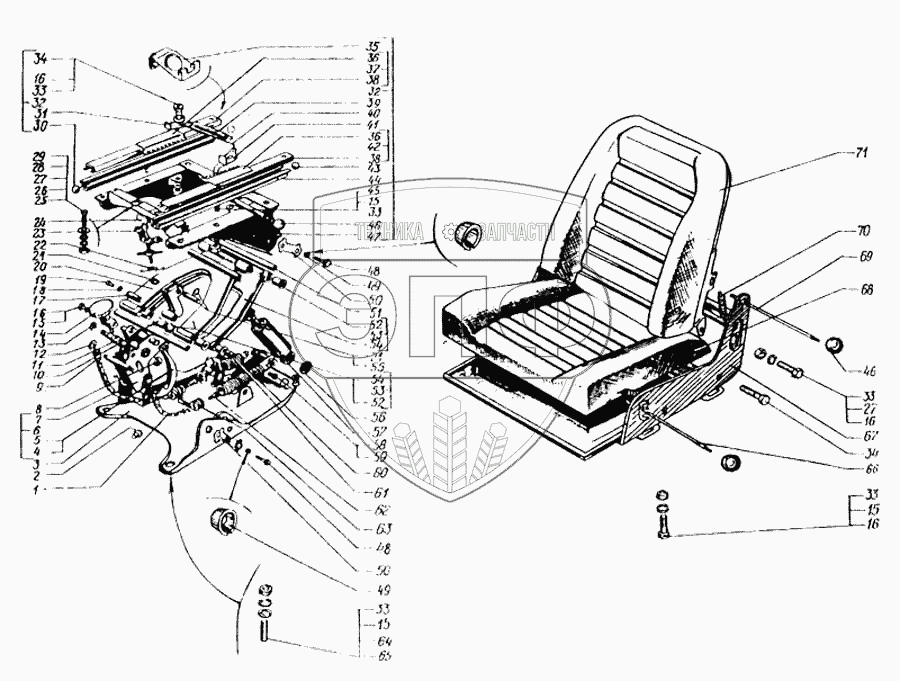 | 32 | 6443-6801012 | Остов сиденья с механизмом регулировки | Нет на складе | |