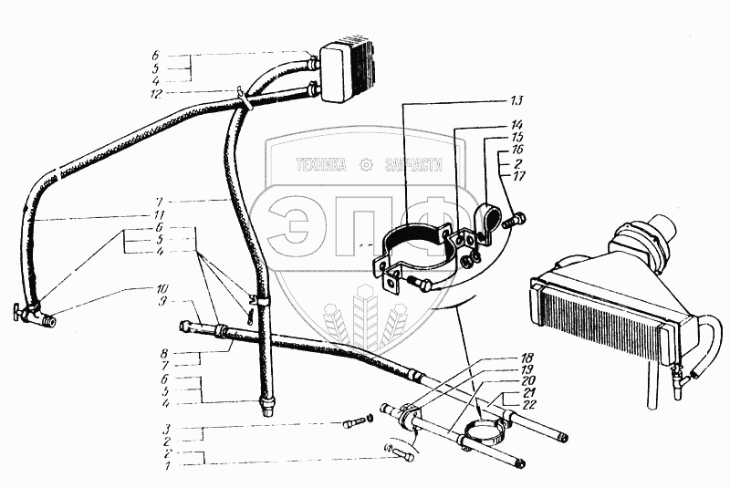 Каталог запасных частей к технике: КрАЗ-6443. Трубопроводы системы отопления кабины