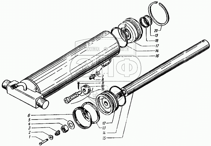 Каталог запасных частей к технике: КрАЗ-6443. Цилиндр опрокидывающего механизма