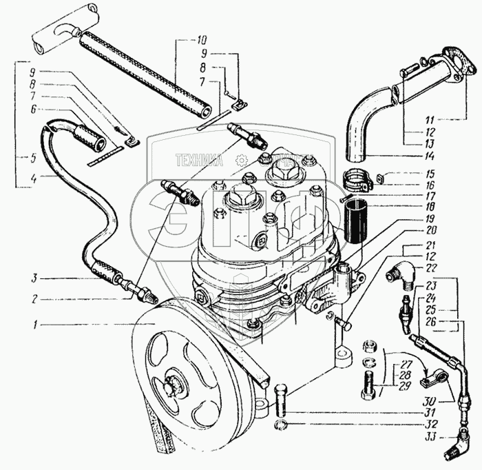 Каталог запасных частей к технике: КрАЗ-6443. Установка и привод компрессора