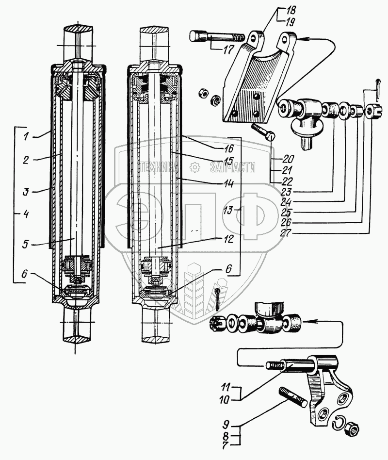 Каталог запасных частей к технике: КрАЗ-6446. Амортизатор передней подвески