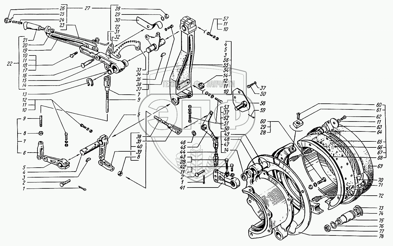 Каталог запасных частей к технике: КрАЗ-6446. Управление стояночной тормозной системой