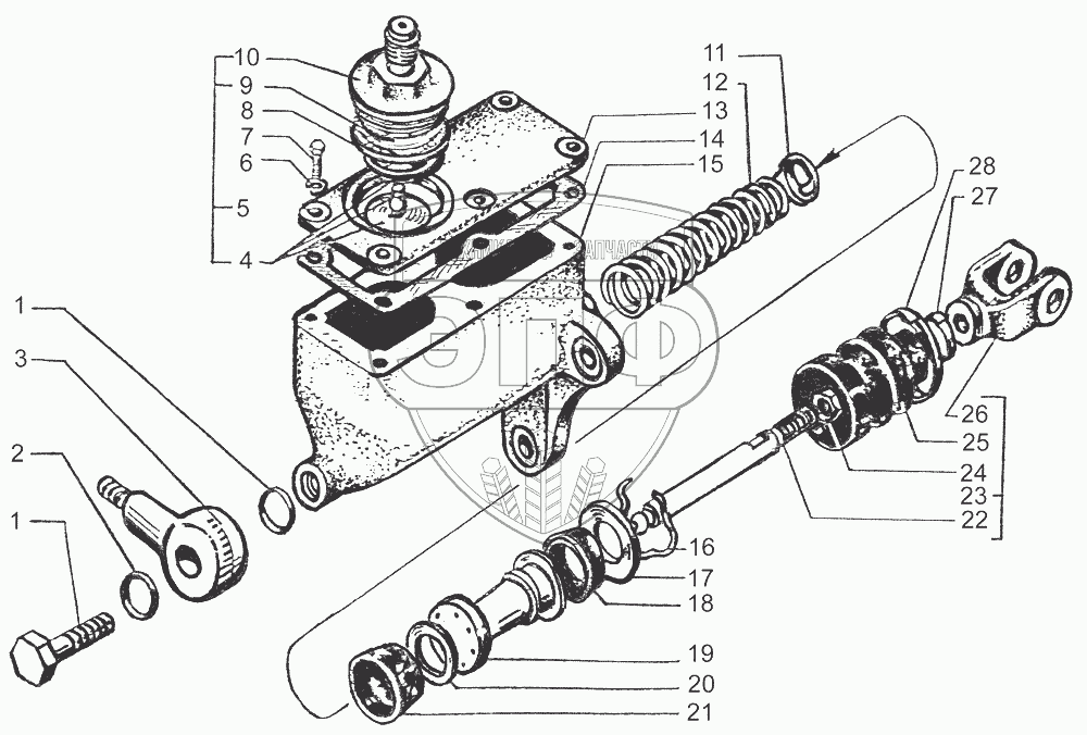 Каталог запасных частей к технике: КрАЗ-65053-02. Главный цилиндр выключения сцепления