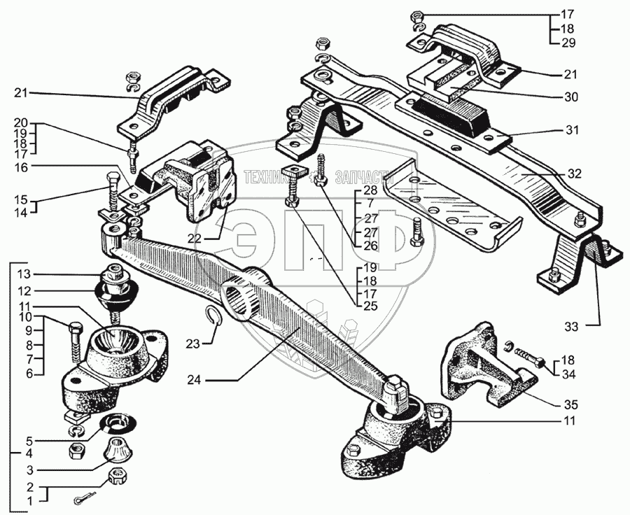 Каталог запасных частей к технике: КрАЗ-65053-02. Крепление силового агрегата
